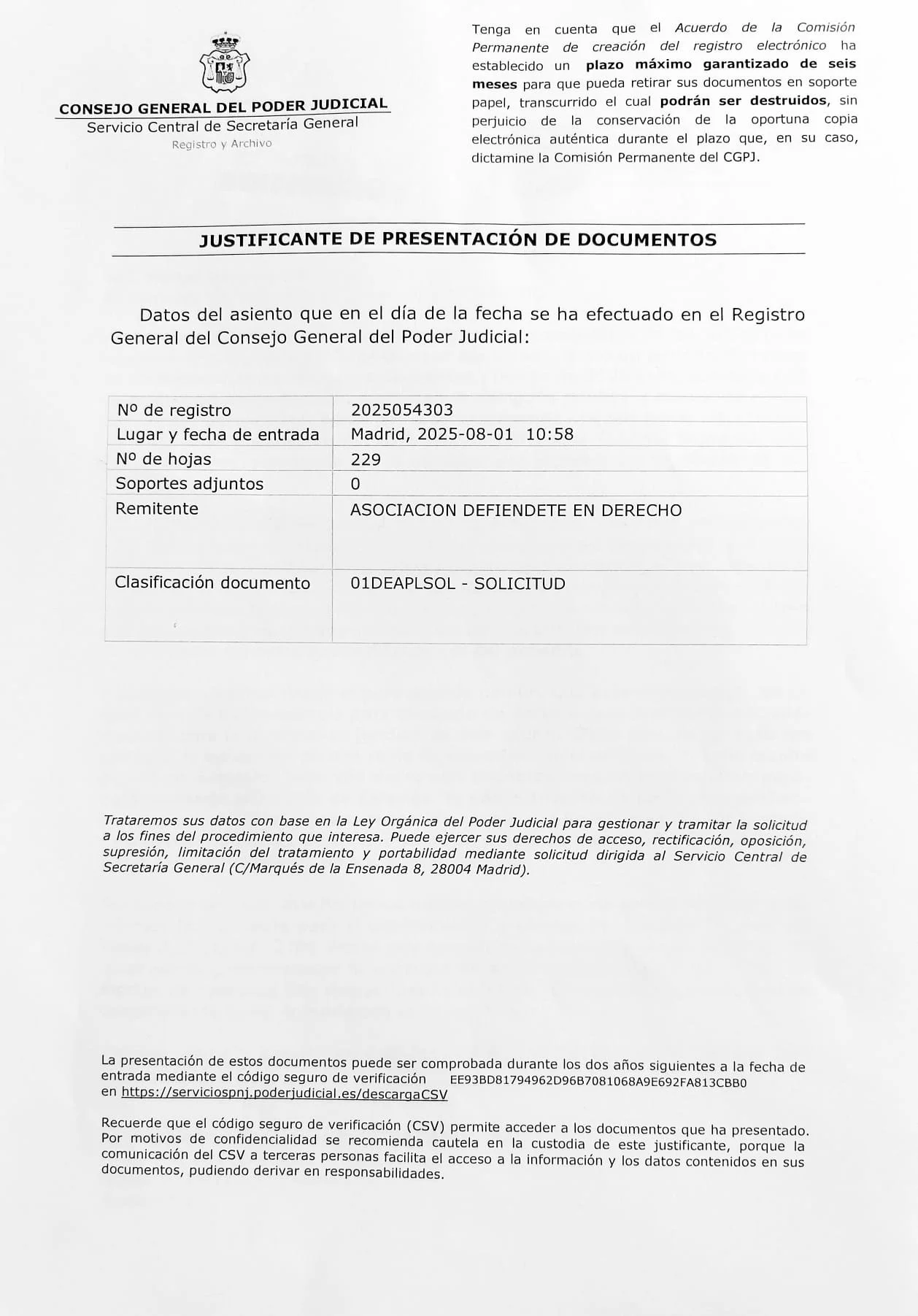 10.180 firmas ante el Consejo General del Poder Judicial en defensa del Fiscal General.